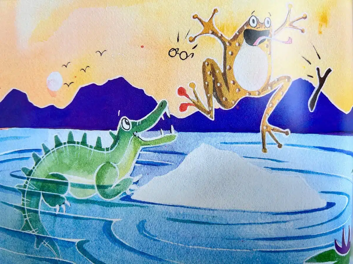 The visual identity of the book combines dynamic imagery and thoughtful use of colour, instantly captivating its target readers. Each page brims with energy and movement, as illustrated by the adorable green crocodile, Nippy, and his journey. The colours are striking yet harmoniously balanced, with sunsets, lush foliage, and playful animal characters forming an immersive narrative environment. The typefaces chosen for the title and text are whimsical and approachable, enhancing the overall playfulness while ensuring readability.